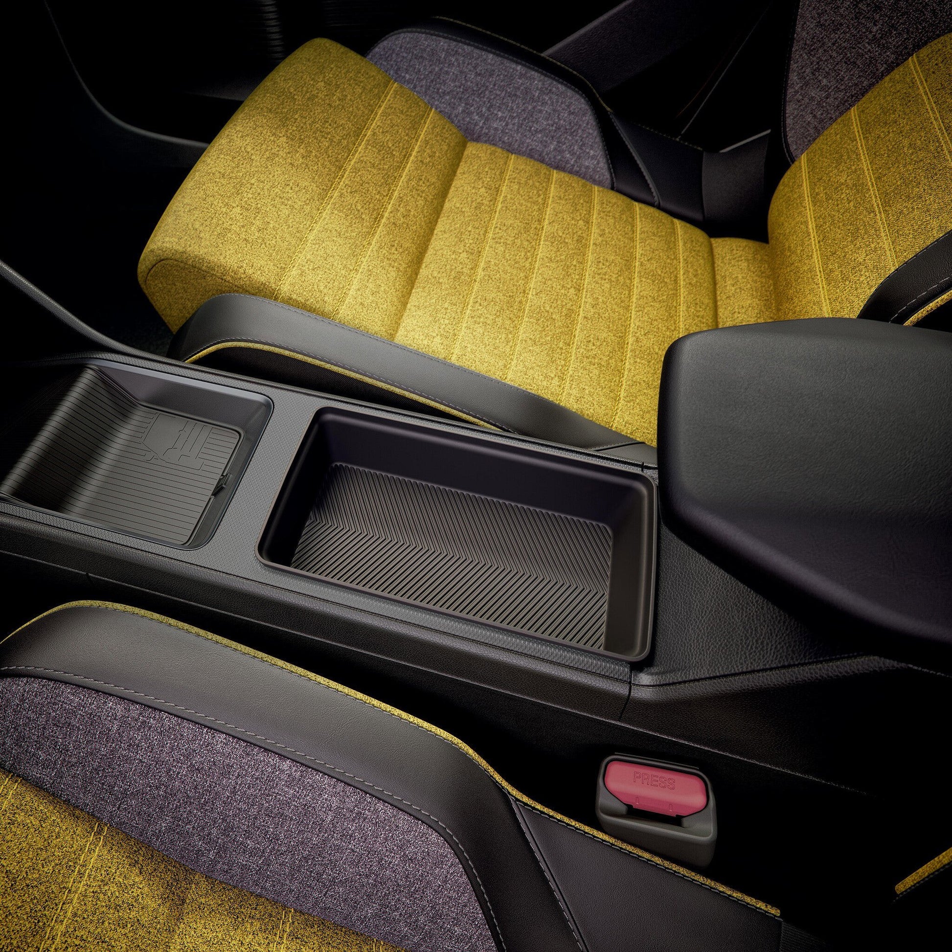 Installs in the center console. Ribbed bottom to keep objects in place. Colour: black. Made in France from 100% recycled material. Packaging The Originals Renault 5.