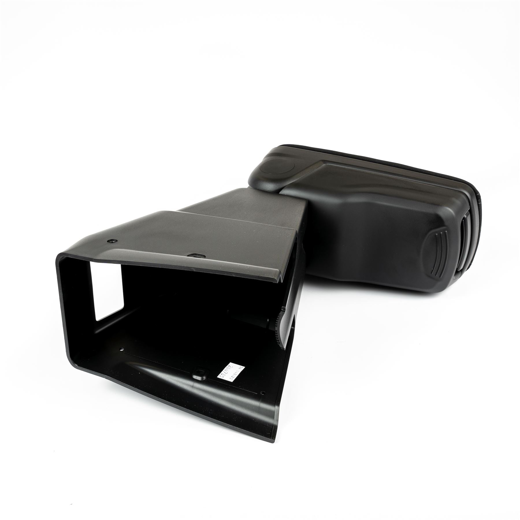 Black fabric armrest. Capacity: 1 litre. Storage space for coins and tokens. Mounting system approved in crash tests with requirements beyond the standards and regulations.
